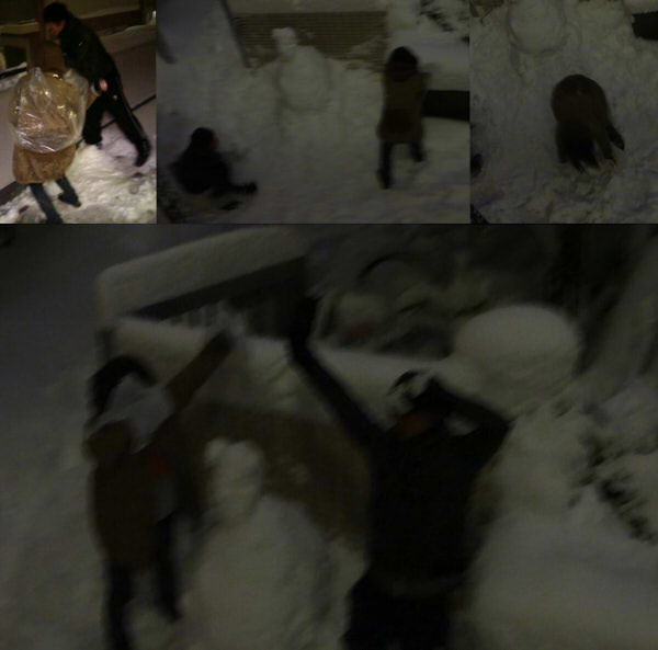 雪だるま製作工程。