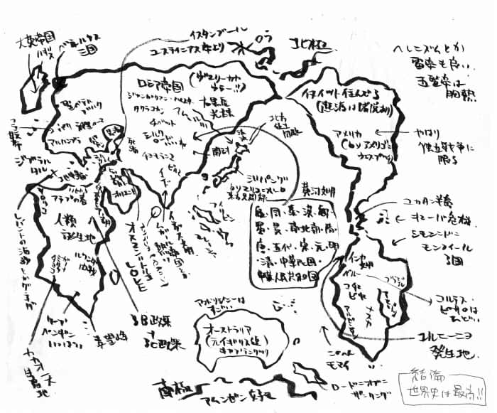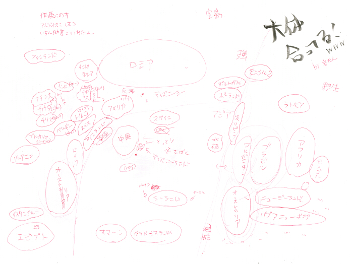 ネームがまたボツり、凹んだ仁月がスタッフと夜食食べてたら、世界地図の話になりました。